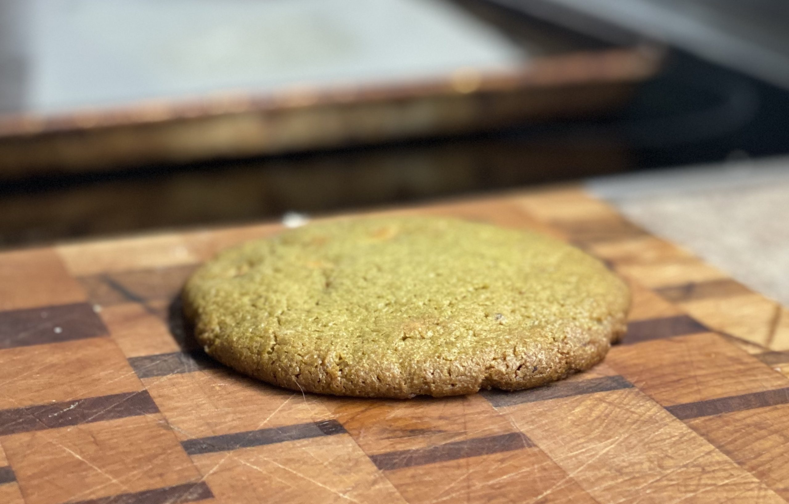 Our original brown butter sourdough cookie mixed with matcha powder and white chocolate chips.